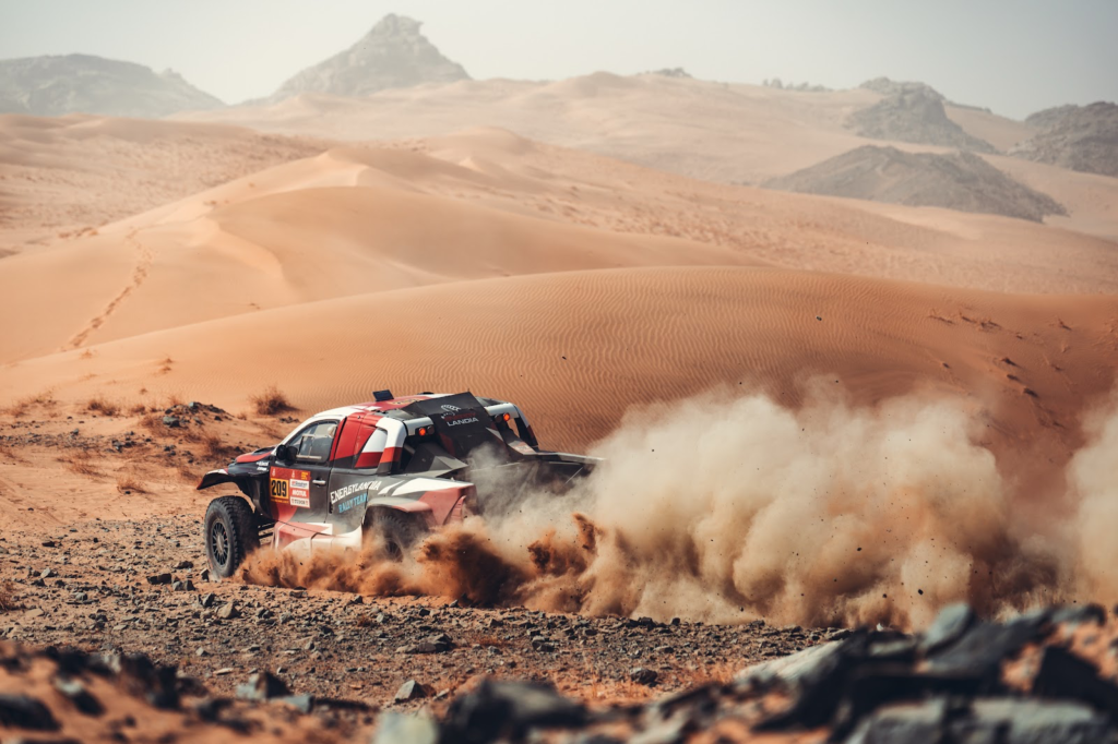 Podczas przedostatniego dnia rywalizacji w Rajdzie Dakar 2026 polskie załogi Energylandia Rally Team odnotowały wyniki w pierwszej dziesiątce. Eryk Goczał wraz z Szymonem Gospodarczykiem ukończyli 12. etap na 5. pozycji. Tuż za nimi, na 6. miejscu, do mety dotarli Marek Goczał i Maciej Marton. Wszystkie trzy duety zespołu ukończyły piątkowe zmagania i przygotowują się do ostatniego startu w Janbu.